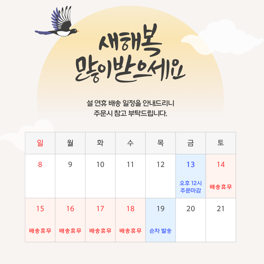 - 도선산간지역 추가 배송비 : 제주 / 도서산간 : 15,000원