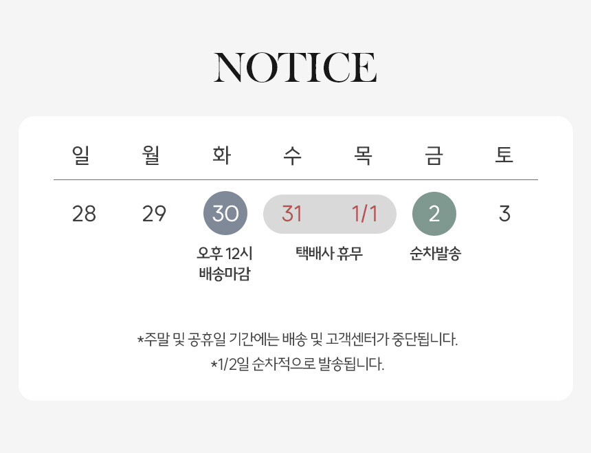 ( 택배사 상황에 따라 당일출고 불가한 경우 지연처리 후, 평일 기준 익일내 출고 진행 )
