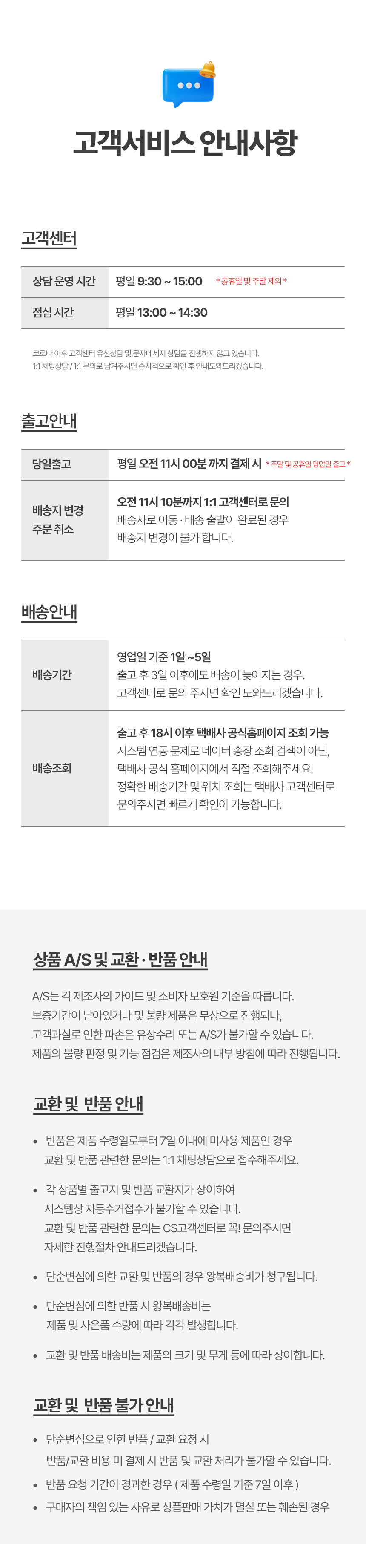 [√ 단순변심 부분 교환 및 반품 안내]