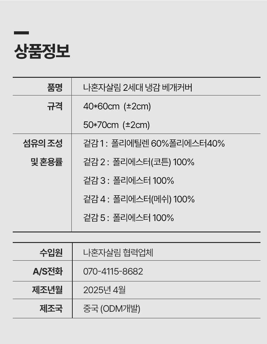 제품명 : 25년형 나혼자살림 여름 냉감베개커버