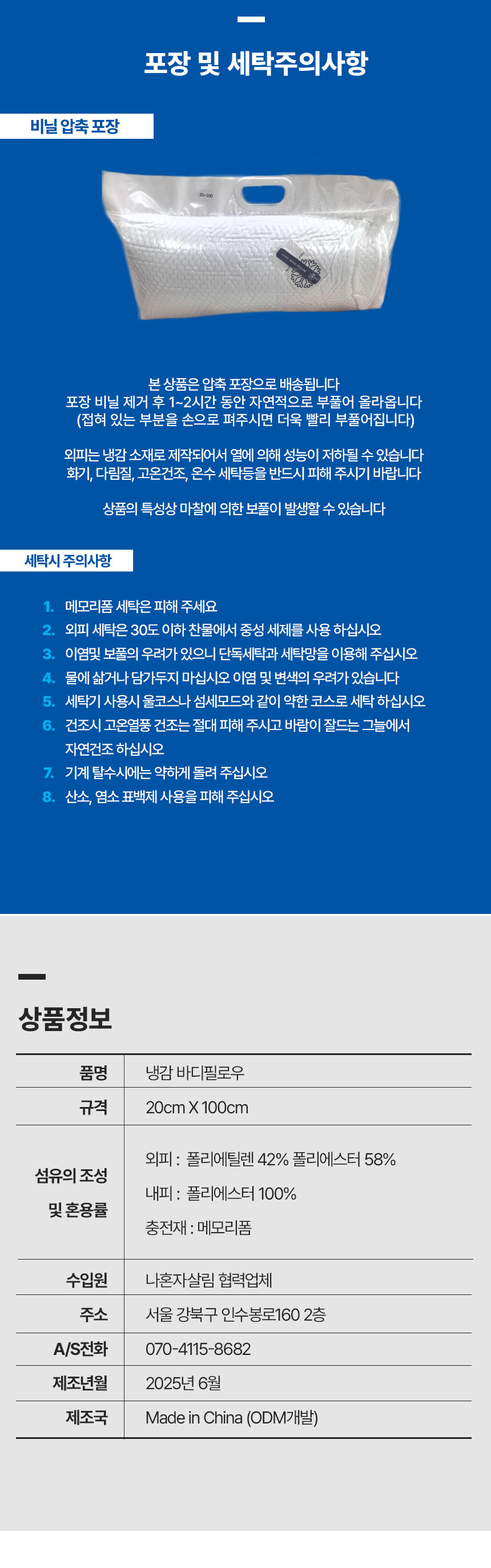 제품명 : 25년형 나혼자살림 냉감 메모리폼 바디필로우 커버분리형